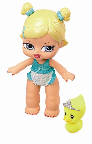 My sister got this for her birthday. She's 6 years old. Well first off this doll has a really big head and short stuby legs and arms. Her pigtails pop on and off for no apparent reason. The doll is dressed in a cute swimsuit and can go in the bathtub with my sister. The box she comes in is also her own bath tub but we never use it. My sister took the doll in the bath once but plays with the rubber duck all the time.