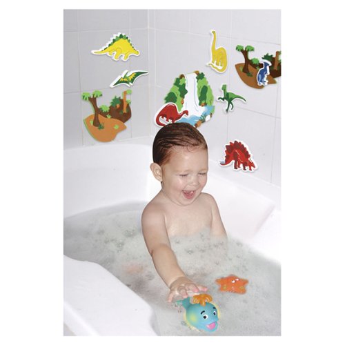 Dinosaur foam pieces stick to smooth surfaces when wet